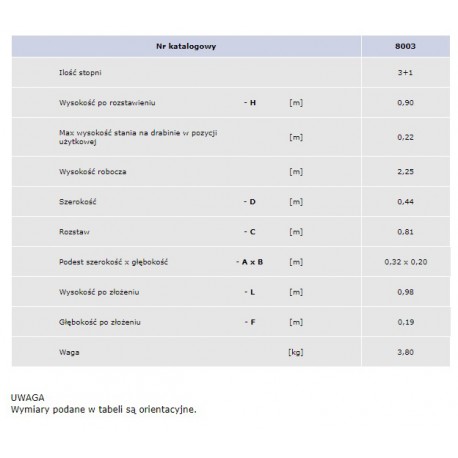 | Max. Stehhöhe auf der Leiter in der Benutzungsposition [m] | 0,62 |