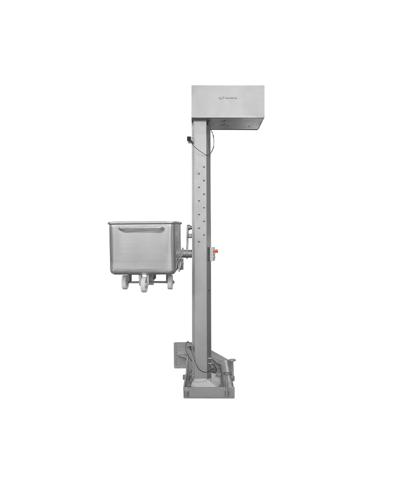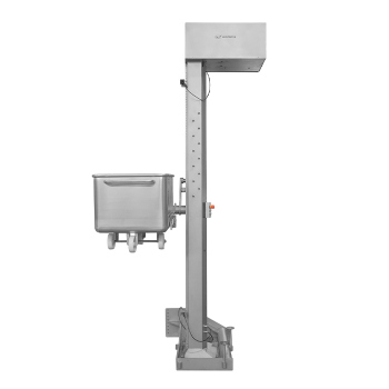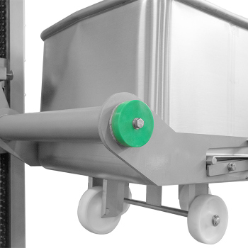 Durch Heben und Kippen in einer Höhe von 1.600 mm werden die Wagen direkt in Maschinen, Anlagen, Produktionstische sowie in andere Behälter entleert. Gesteuert wird das Gerät über einen Taster, der mit einer "Heben, Senken"-Funktion ausgestattet ist.