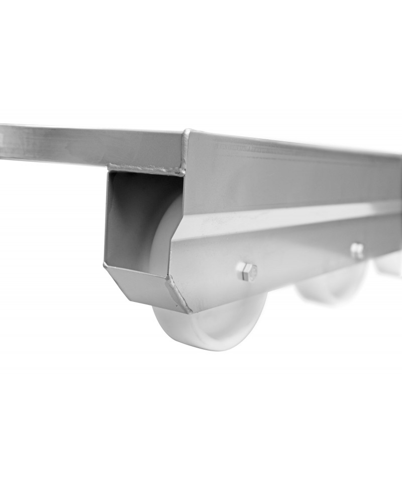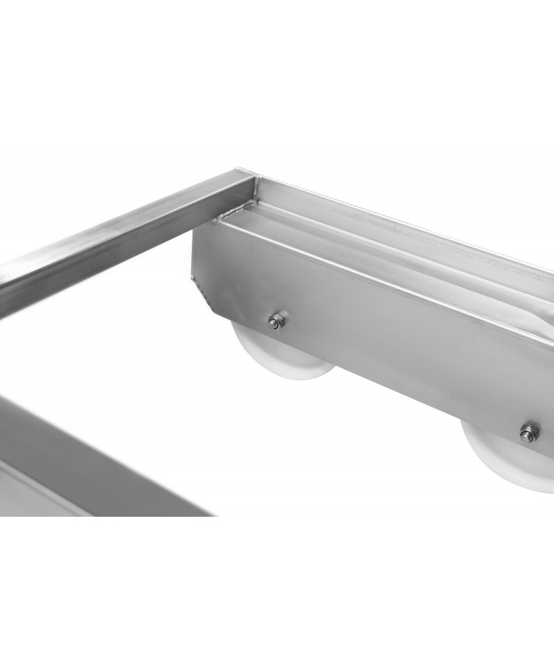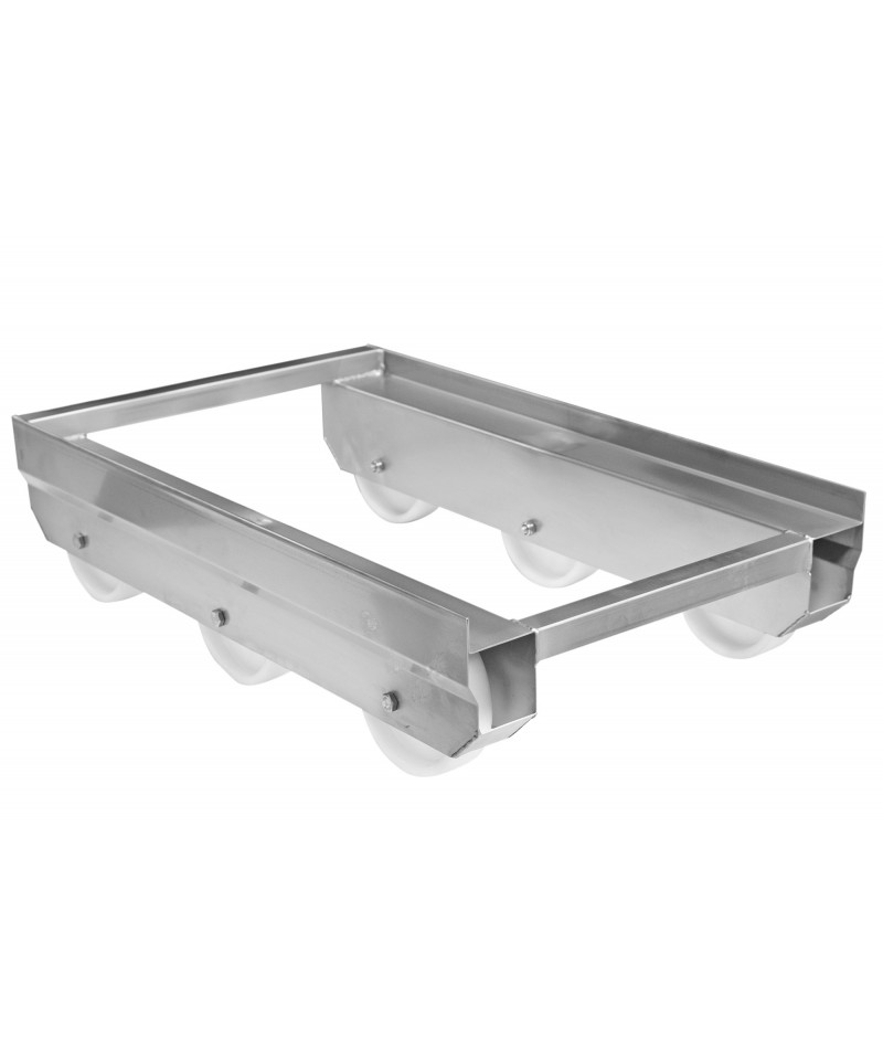 Wagen aus rostfreiem Stahl 1.4301 für den Transport von Eurokisten. Griff oder Deichsel können erworben werden, um den Wagen leichter fahren zu können.
