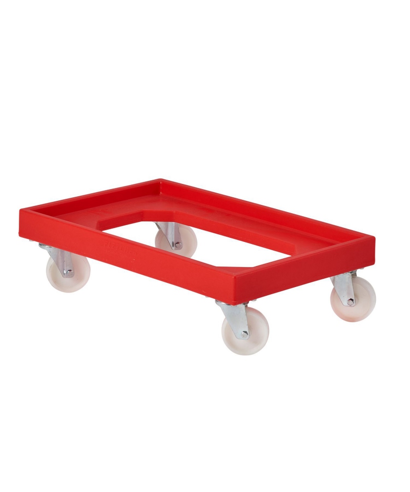 Hergestellt aus zertifiziertem lebensmittelechtem Polyethylen mittlerer Dichte. Diese speziellen Kunststoffwagen sind so konzipiert, dass sie einen Stapel von Tabletts bis zu einer Größe von 645 x 395 mm aufnehmen können. Die vier Lenkrollen erleichtern den Transport von Stapeln von Kunststofftabletts am Arbeitsplatz, und der Kunststoffwagen selbst ist in einer großen Auswahl an Farben erhältlich.