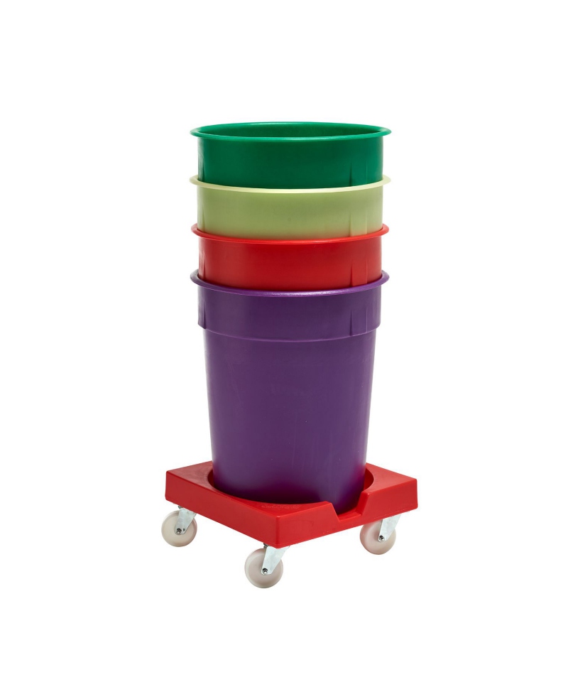 Der Kunststoffwagen ist aus robustem, lebensmittelechtem Polyethylen gefertigt und eignet sich ideal für den Einsatz in industriellen und hygienischen Umgebungen. Dieser Kunststoffwagen wird standardmäßig mit Lenkrollen aus Polypropylen mit 100 mm Durchmesser geliefert. Mit einer kreisförmigen Öffnung von 445 mm Durchmesser ermöglicht dieser Wagen auf Rollen die sichere Unterbringung von konischen und runden Kunststoffbehältern.