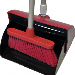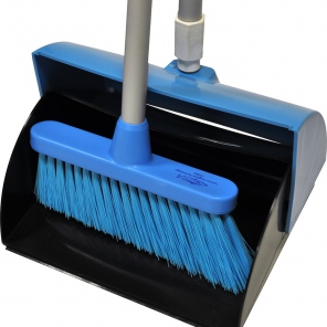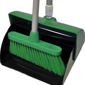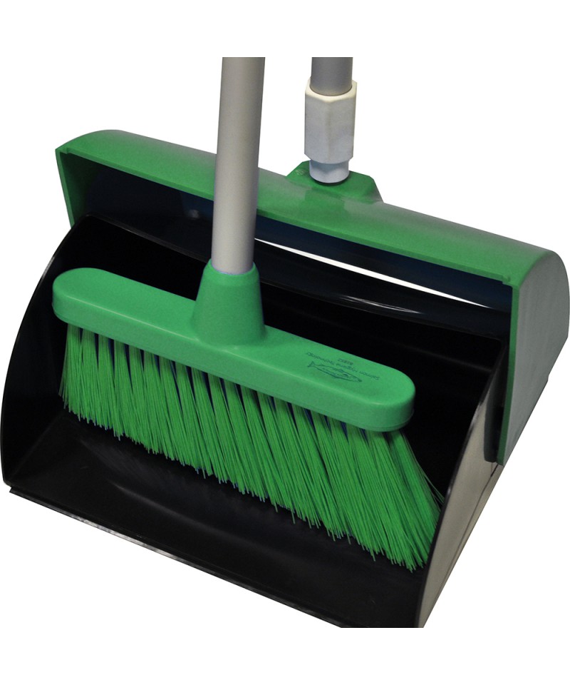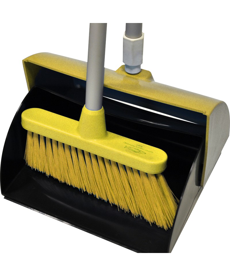 Set - hygienische Kehrschaufel und Kehrer mit schrägen Borsten im "Lazy Man"-Stil, gefüllt mit mittelharten Borsten.
