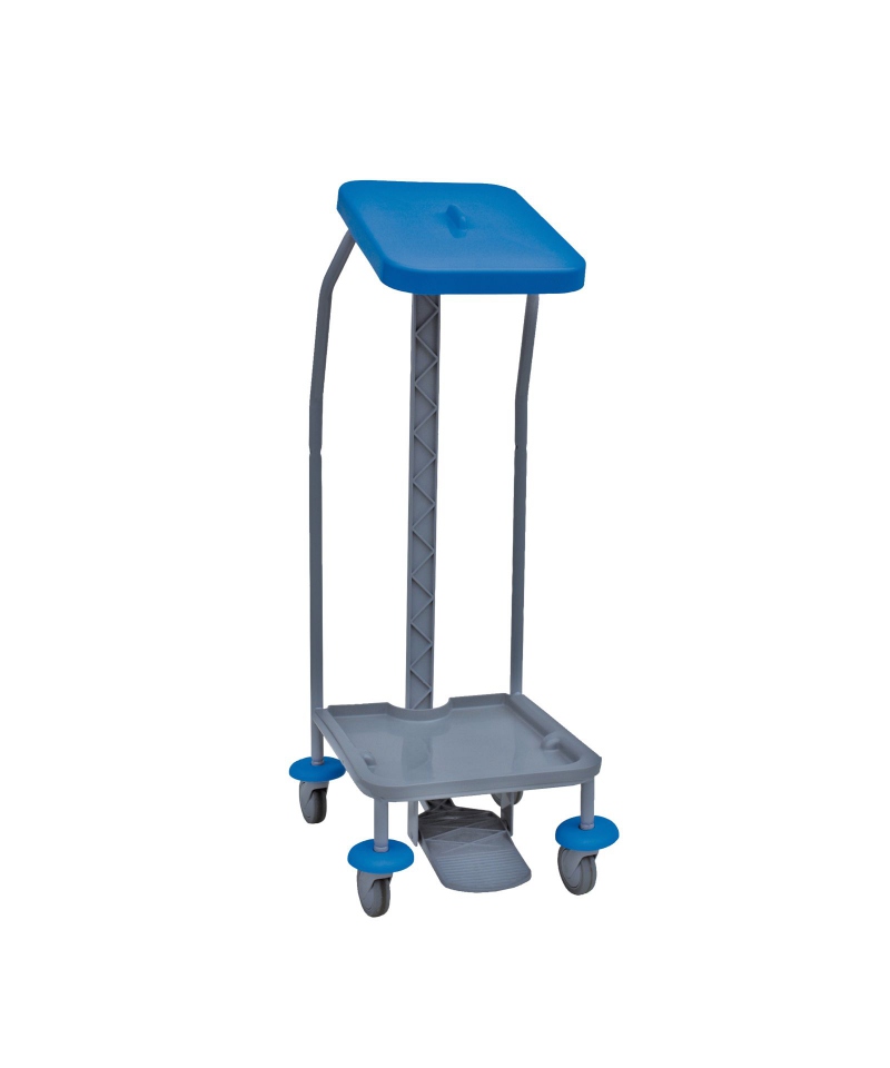 Sackwagen mit Klappe, auf Rädern ø 80 mm und mit im Deckel integriertem Pedal.