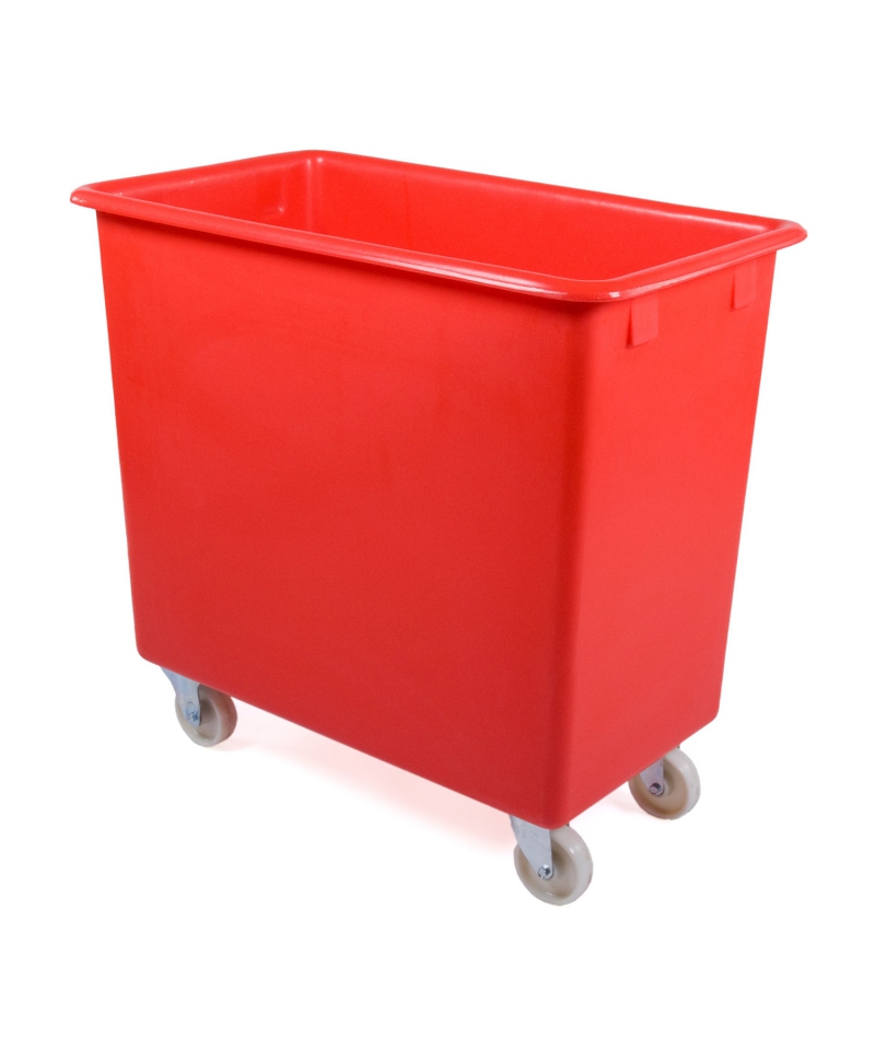 Der Kunststoffbehälterwagen ist aus lebensmittelechtem Polyethylen hergestellt und hat ein Fassungsvermögen von 200 Litern. Er wird standardmäßig mit 2 x festen und 2 x schwenkbaren Rädern mit einem Durchmesser von 100 mm aus Polypropylen geliefert. Das konische Design ermöglicht es, den Behälter im leeren Zustand zu verschachteln und ist glatt, nahtlos, hygienisch und wasserdicht.