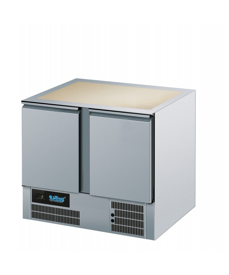 2-door refrigerated table for GN 1/1, top with a contact edge bent upwards by 50 mm (type C), evaporator packed in the rear wall, forced air circulation, automatic defrosting and condensate evaporation, electronic controller. Ready to connect.