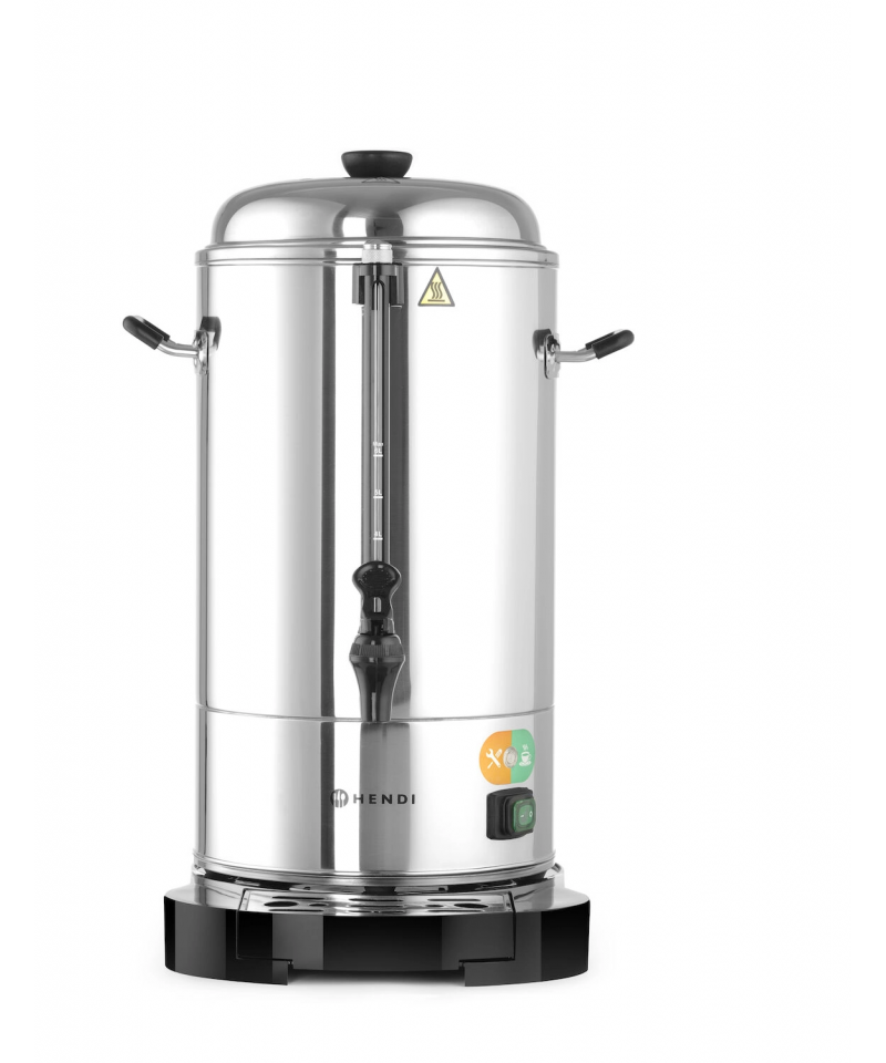 The HENDI 10L coffee percolator is a professional solution for those who need to brew large quantities of fresh coffee – ideal for catering, offices, or events. Thanks to its double-walled design made of polished stainless steel, the coffee percolator maintains the beverage temperature for longer while using up to 20% less energy compared to single-walled models.