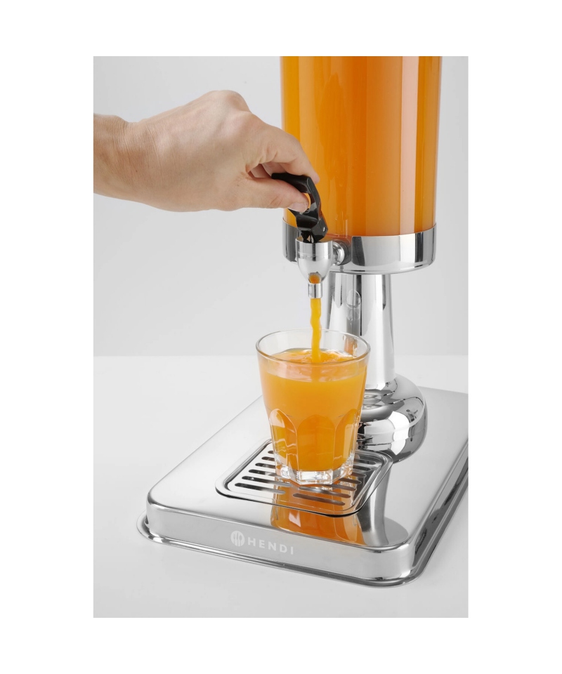 The removable drip tray makes cleaning simple, while the compact dimensions (315x215x490 mm) and low weight (1.96 kg) ensure mobility and easy storage. Thanks to its solid construction, the Hendi juice dispenser is not only practical but also durable for intensive use.