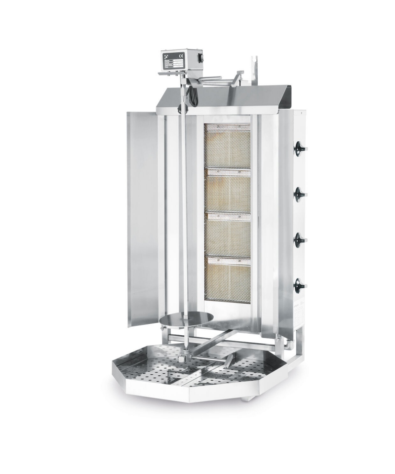 The 900 mm spit can hold up to 60 kg of meat, making it ideal for large events and busy food service environments. The integrated motor with reversible rotation ensures even roasting on all sides, while the adjustable distance between the spit and the heating elements provides greater control over cooking intensity.