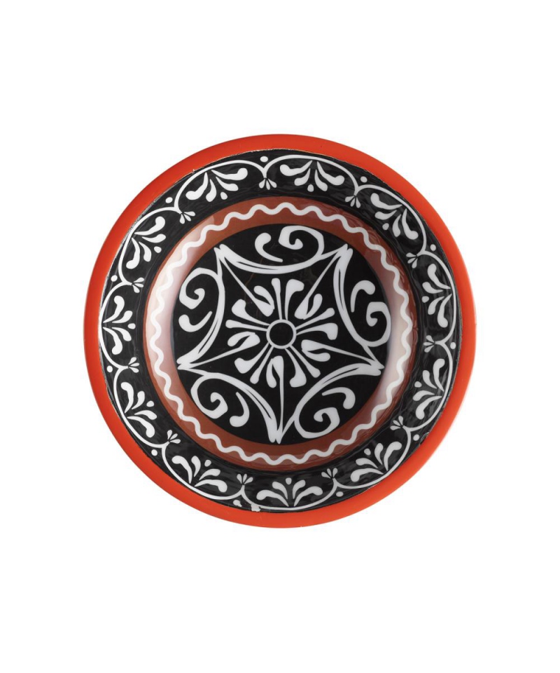 Square dish made of durable black melamine. It has non-slip feet underneath and is easy to clean.