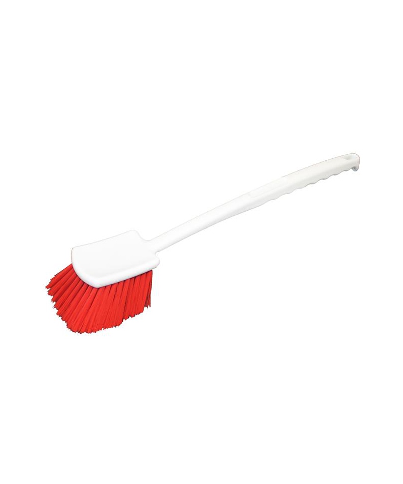 The 520 mm long-handle brush in red is designed for commercial kitchens, cleaning stations and any environment where HACCP-compliant cleaning tools are required. The extended handle enables comfortable reach in hard-to-access areas, while the red colour simplifies tool segregation and hygiene management. Robust build and synthetic bristles make it durable and easy to clean.