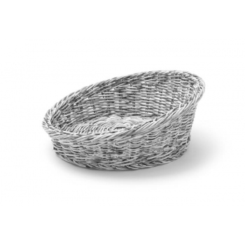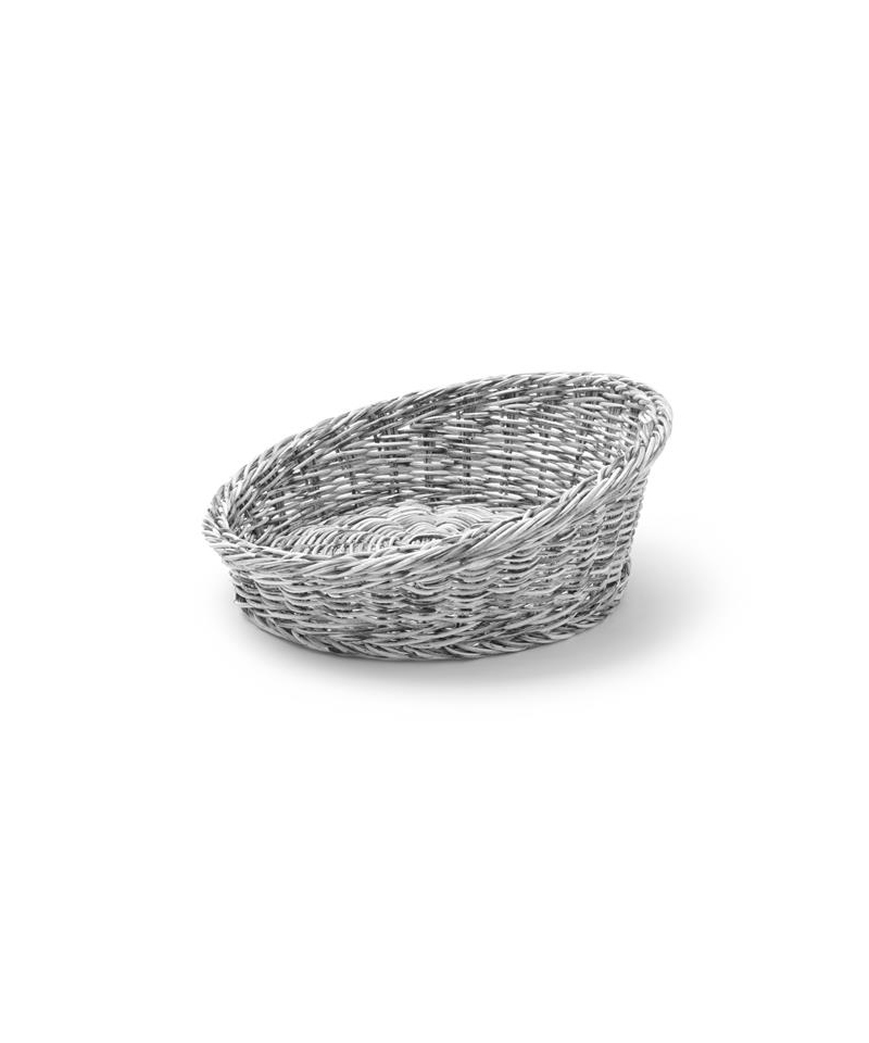 The grey skewed round basket, diameter Ø 310 mm, is a sleek and functional item designed for buffet stations, restaurants and catering services. Its angled design offers excellent product visibility, making it ideal for presenting bread, pastries or snacks. The grey finish complements modern hospitality interiors, and the high-quality material ensures durability and easy maintenance.