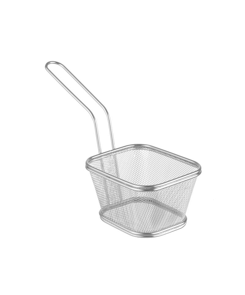 A mini snack basket measuring 130×115 mm, made of stainless steel, designed for professional serving of fried snacks such as fries, onion rings, chicken wings or tempura. The compact size makes it ideal for single-portion servings or use in buffet and catering areas. The stainless steel construction ensures durability and easy maintenance under high use.