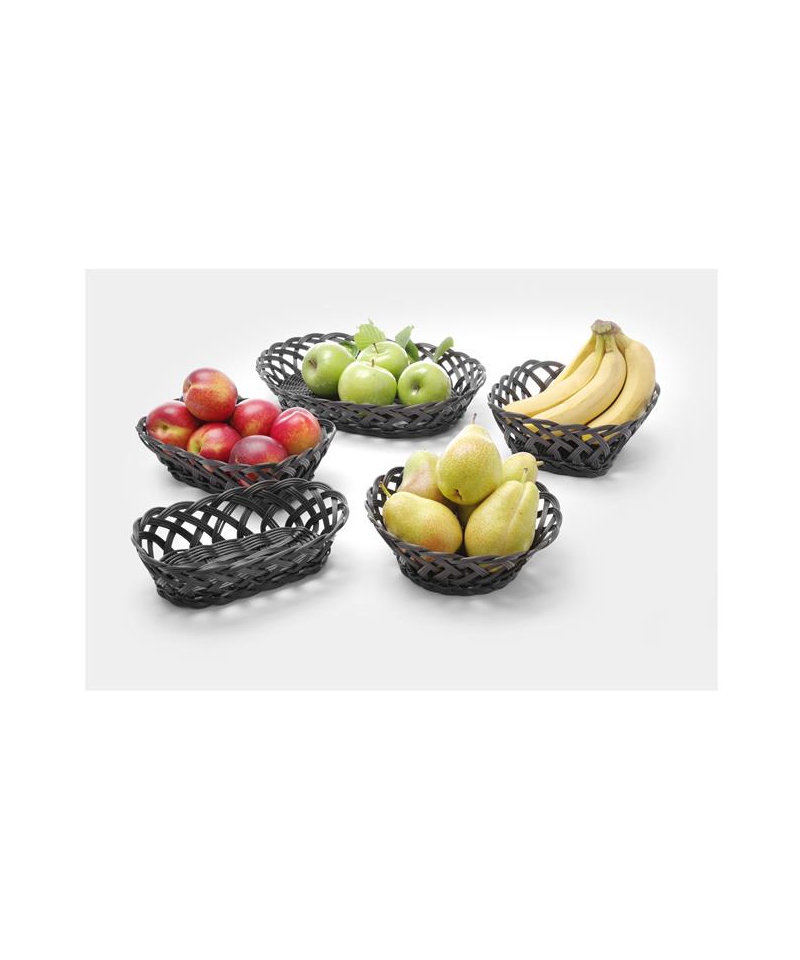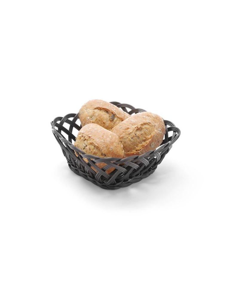 The woven basket with dimensions 190 × 190 mm (approx. 80 mm height) is a functional and stylish serving accessory designed for the hospitality sector. With its durable construction and black finish, it is ideal for serving bread, snacks or decorative display in restaurants, hotels and buffet lines.