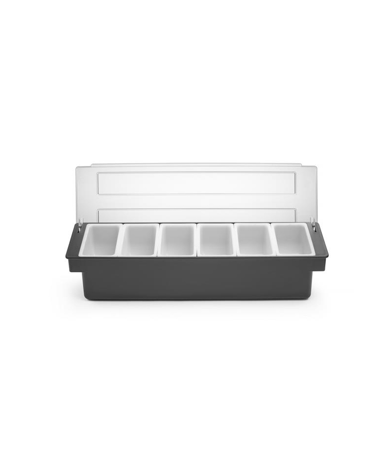 - 6 polypropylene containers for storing side dishes or condiments separately