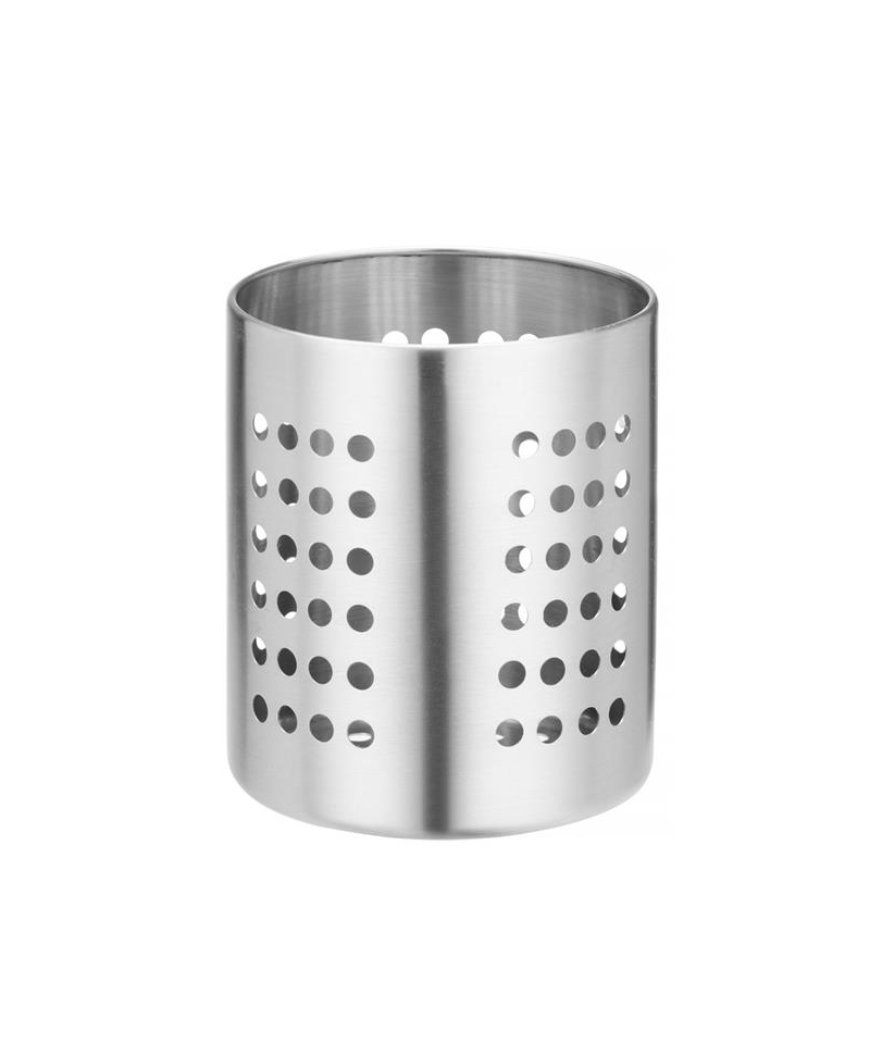 Perforated cutlery container made of satin stainless steel. Perfect for coffee spoons and forks. Can be washed in the dishwasher.