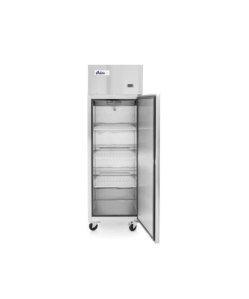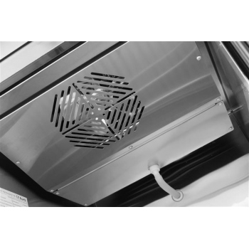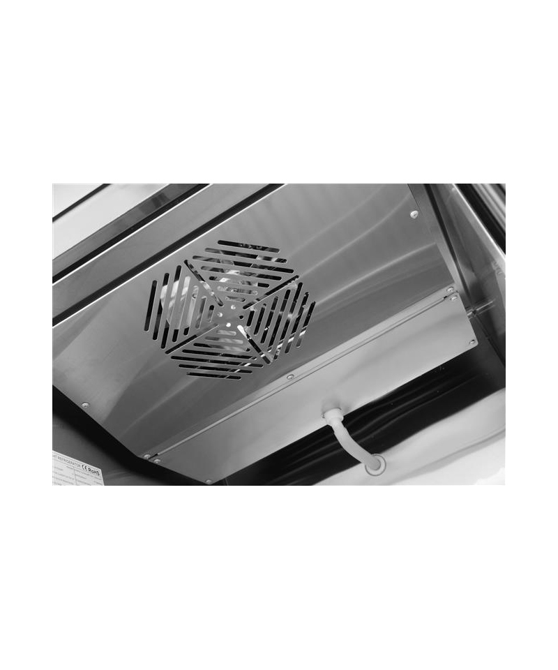 Refrigerated cabinet GN 2/1, double-door, forced air circulation, automatic. defrosting and hot gas condensate evaporation, adjustable with digital display. Central cooling with condensate drain. Hygienic interior with rounded edges