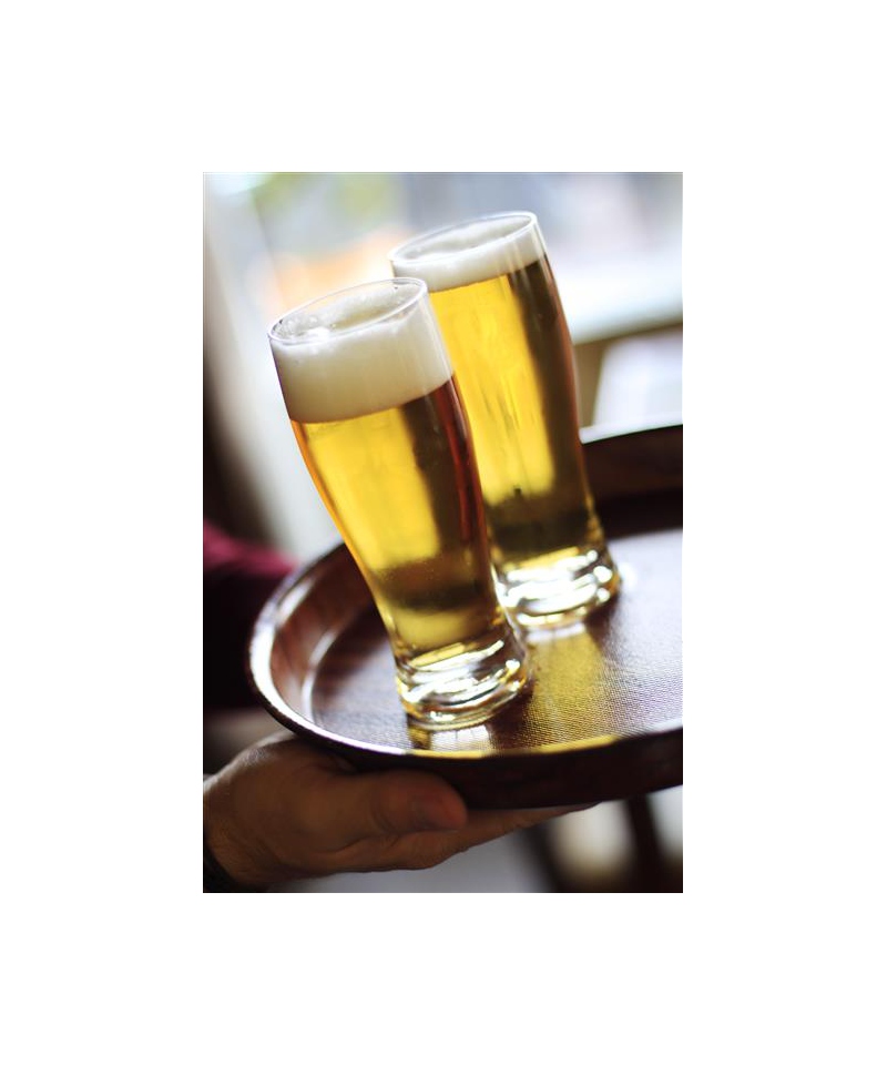 The waiter's tray is made of glass-fiber reinforced polyester, with a non-slip coating made of natural rubber. Dishwasher safe and stackable.