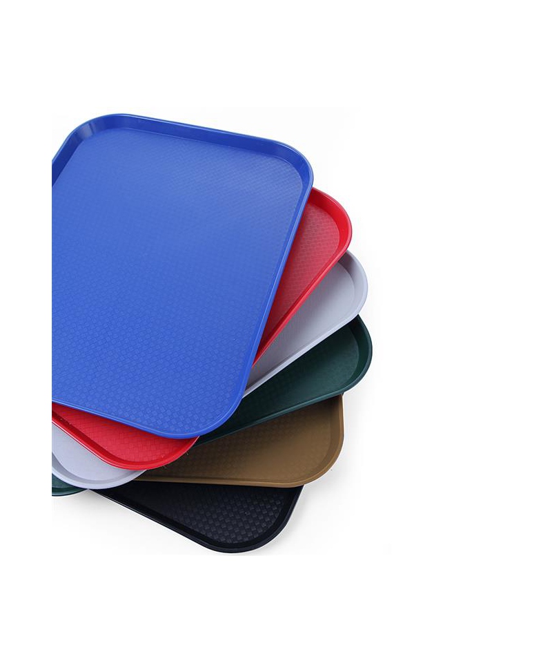 The small black FAST FOOD tray is a professional solution for canteens, cafés, and fast-food restaurants. Made from high-quality polypropylene (PP), it offers excellent durability, resistance to heat and moisture, and a modern appearance. The non-slip surface ensures that dishes and glasses remain stable during transport, providing safety and comfort in daily use.