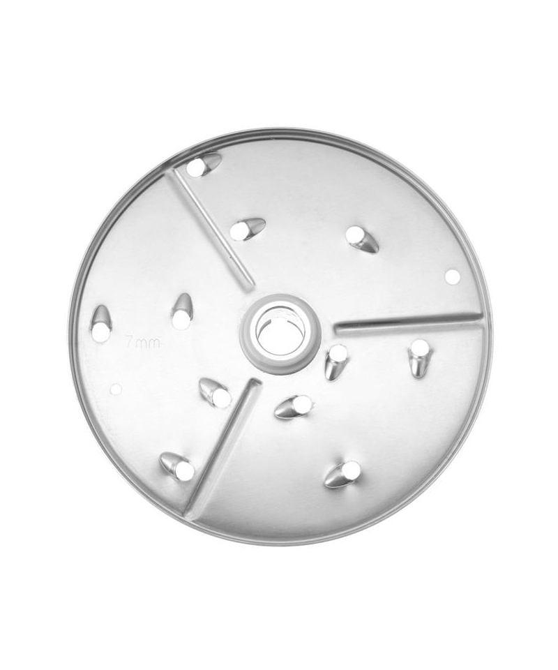 The 7 mm shredding disc designed for slicer model 222683 is a professional-grade replacement component made of stainless steel. It allows for the production of thick vegetable shreds or other food material with consistent 7 mm thickness, supporting efficiency and repeatability in commercial kitchens and food-processing operations.