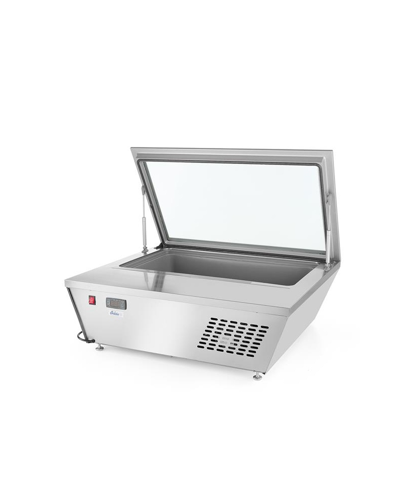 Freezer cupboard with forced air circulation, with automatic unit. defrosting and hot gas condensate evaporation, adjustable with digital display. Central cooling with condensate drain. Hygienic interior with rounded edges and an embossed floor. Evaporator located outside the refrigerator compartment. The aggregate in the form of a monoblock located on the top of the device.