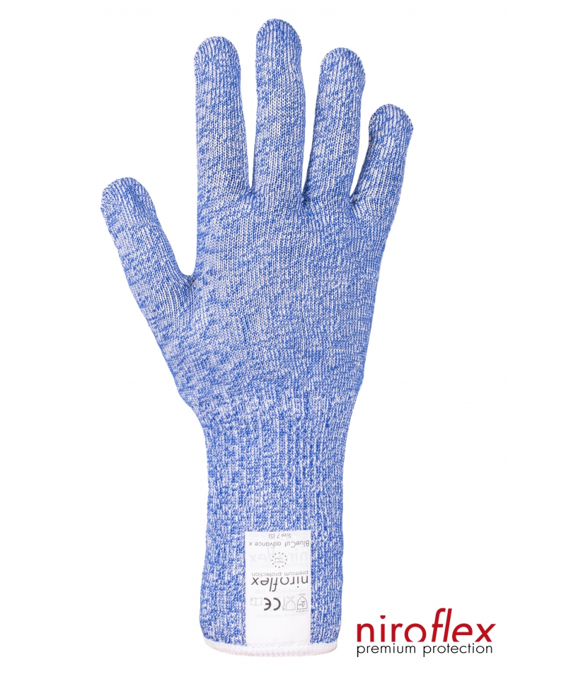 The glove is made from a fine, 13-gauge knitted fabric that offers flexibility and breathability, ensuring a comfortable fit while maintaining full dexterity. A key feature of the BlueCut Advance X is its extended pulse protection, which safeguards the wrist area more effectively than standard gloves, making it particularly useful in industries where added wrist protection is crucial.