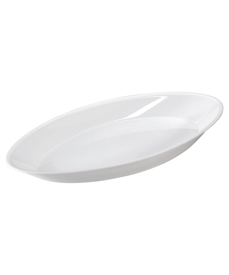 This shape is reminiscent of mother's kitchen when the freshly prepared casserole is served and the whole family eats together. The simple elegance of the oval shape underlines this effect both on the counter and at the buffet. For salads, delicatessen and stews.