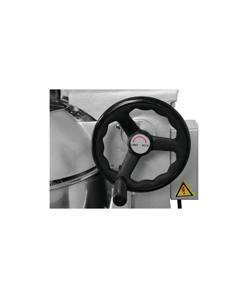The mixer's robust construction, with dimensions of 990x640x520mm and a weight of 152kg, guarantees stability and durability. The body, made of high-quality aluminum and steel, finished in an elegant silver metallic color, is not only aesthetic but also extremely easy to keep hygienically clean. Crucially for gastronomy, the bowl and all additional accessories are made of the highest quality stainless steel, fully safe for food contact.
