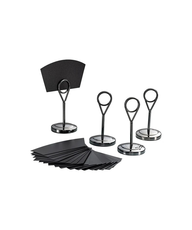 This elegant set of 4 card holders offers a stylish and professional way to label food items in display cases, counters, or buffet lines. With a height of 105 mm and a 50 mm base diameter, each holder is crafted from high-quality stainless steel in a sleek gunmetal finish, combining modern aesthetics with long-lasting durability.