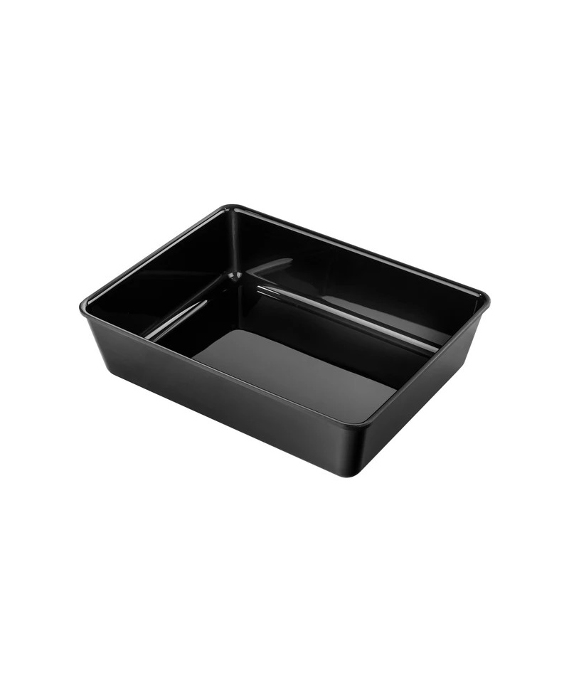 The FRESH display tray measuring 280 × 560 × 50 mm offers a unique combination of generous surface area, low profile, and substantial 7500 ml capacity. Its elongated shape makes it a versatile solution for showcasing long food items such as filleted fish, roasts, cheese assortments, or visually arranged appetizer platters in a clean and inviting way. This model is especially effective in refrigerated counters and buffet displays where both aesthetics and efficient space use are essential.