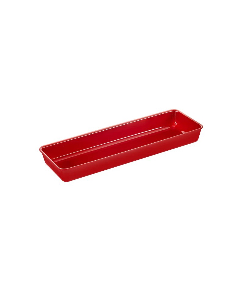 This tray is made from durable, food-safe material that is dishwasher-safe, resistant to impact and temperature fluctuations between -20°C and +85°C. Its glossy red surface enhances food presentation and adds a vibrant accent to your counter, buffet, or refrigerated display case.