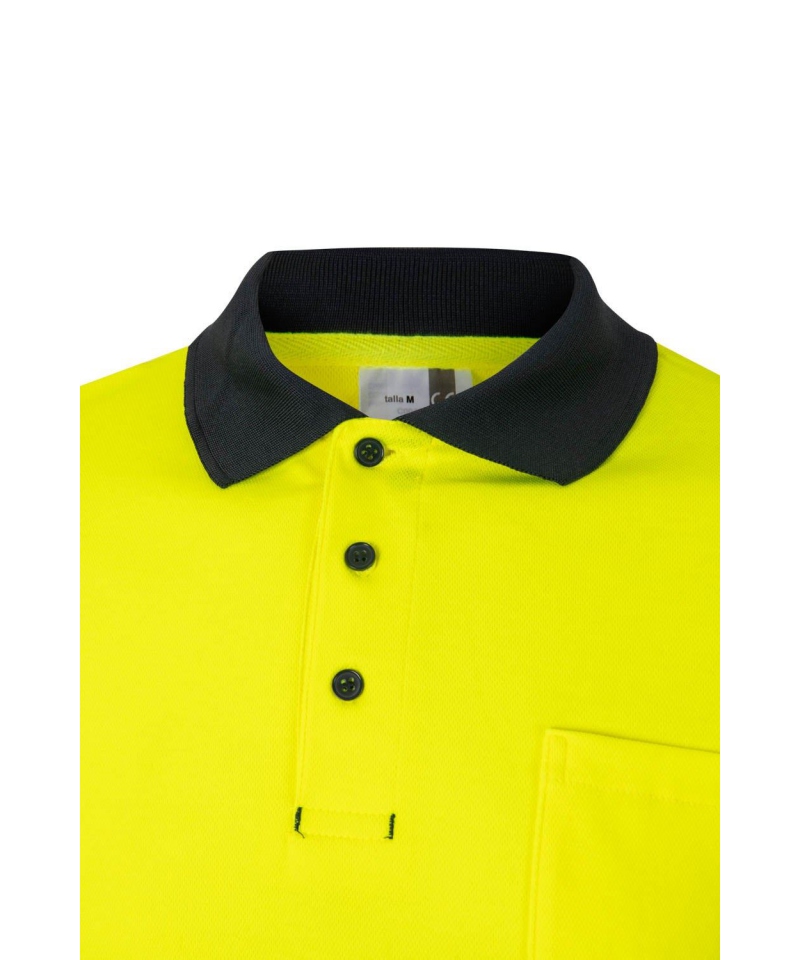 This premium short-sleeve polo shirt combines modern style with practical functionality and high-visibility performance. Crafted from a comfortable and durable blend of cotton and recycled polyester (GRS-certified), the fabric offers breathability and moisture management, making it ideal for warmer days and long shifts.