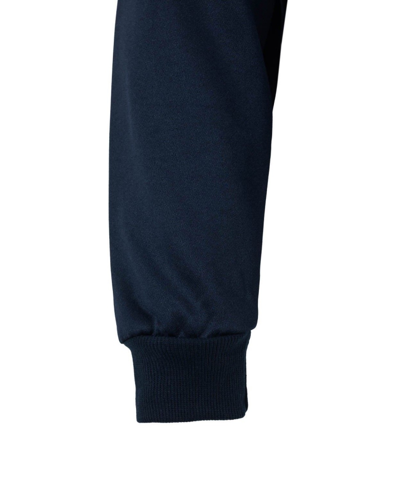 The sweatshirt features a zip-up mock neck collar for easy on and off and customizable ventilation. Reflective tapes on the torso and sleeves ensure high visibility during nighttime or low-light situations. Ribbed cuffs and waistband provide a secure, wind-resistant fit while maintaining freedom of movement.