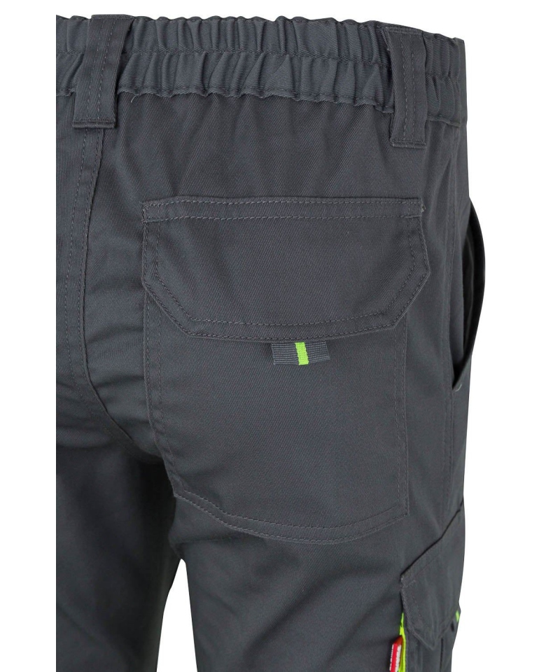 Equipped with six practical pockets – including two French pockets, two large bellow-style side pockets with flap covers, Velcro and pullers, and two back pockets with flap closures – these trousers offer ample space for tools and essentials. The contrasting colours on bellows, loops, and stitching add a modern, technical look, while the reflective bands on the lower legs enhance visibility in low-light conditions.
