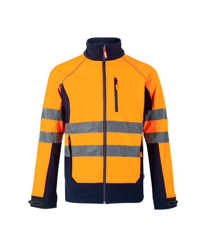 This two-tone softshell jacket is a modern piece of workwear designed for those who require maximum visibility, protection, and comfort. Designed in a striking combination of high-visibility orange and navy, it ensures the wearer stands out even in low-light environments. Certified according to EN 20471 (class 2), it features high-quality REFLETEX reflective tape on the torso and sleeves, offering guaranteed reflection and enhanced safety during roadside or outdoor work.
