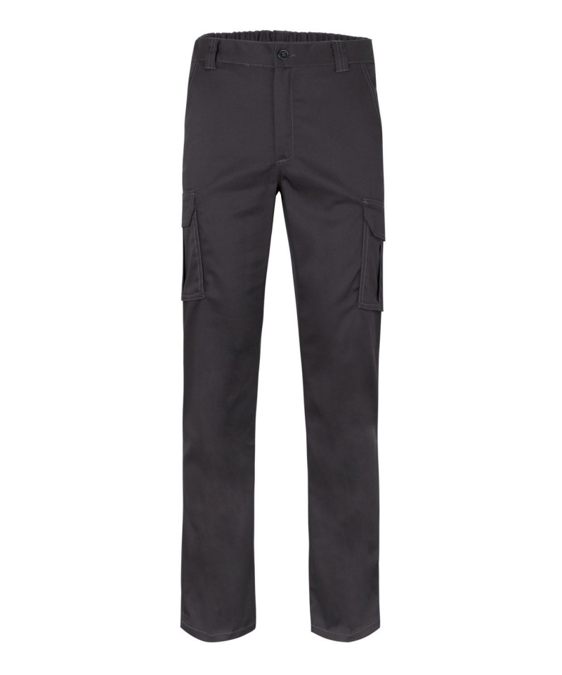 Functionality is front and center: six practical pockets keep your tools and essentials within easy reach. You’ll find two classic French pockets, two voluminous bellows pockets with double pleats, flaps, Velcro and pullers, and two back patch pockets with flaps and Velcro closures. The trousers feature a central zip and button closure, contrast stitching for added style, and a comfortable elastic waistband. Double safety seams reinforce the most exposed areas, ensuring the trousers keep up with your workday demands.