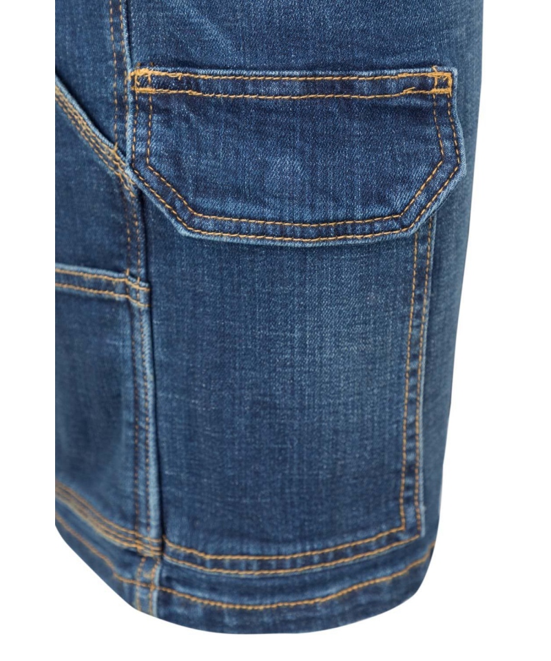Stretch denim bermuda shorts with 8 functional pockets. Reinforced seams and metal rivets. Durable and comfortable thanks to heavy-weight 380 gsm fabric.