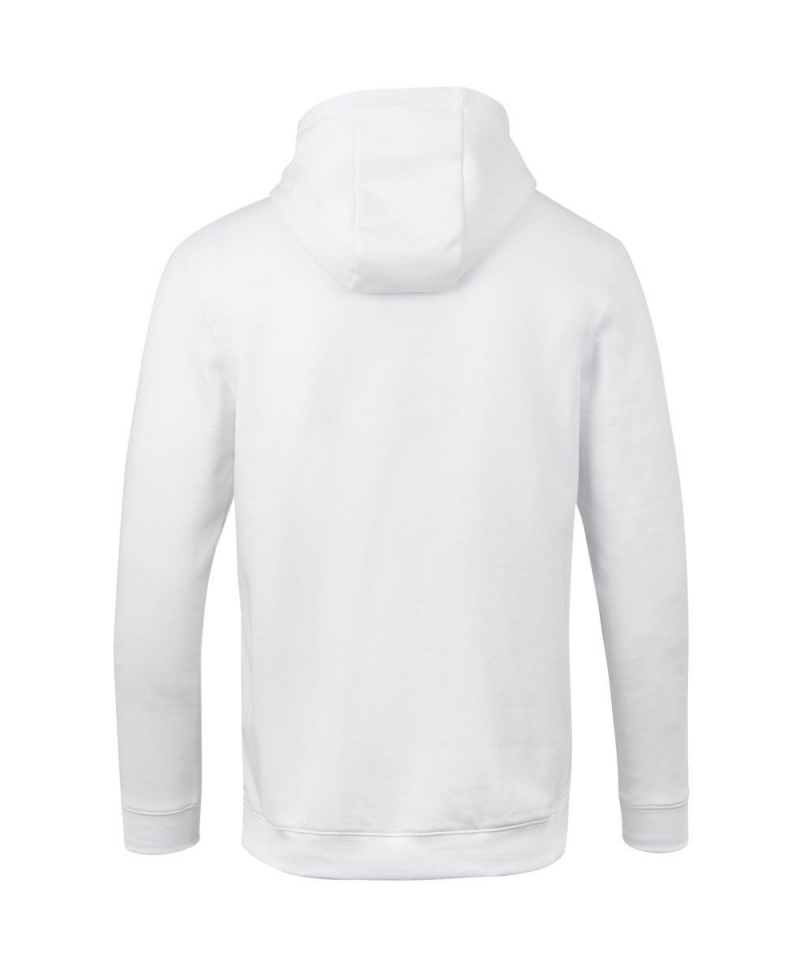 A spacious kangaroo pocket on the front adds a sporty touch and offers convenient hand-warming or storage space. The reinforced herringbone neck tape adds structure to the collar area and enhances comfort throughout the day.