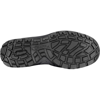 The EVANIT insole, made from a special EVA and nitrile blend, features variable thickness tailored to the foot’s anatomy, is perforated, coated with breathable fabric, and antistatic. The steel toe cap withstands impacts up to 200 J, while the non-metallic APT PLUS Zero Perforation plate provides reliable puncture protection. The dual-density polyurethane sole is flexible, resistant to bending, and offers excellent grip thanks to the special positioning of the lugs.