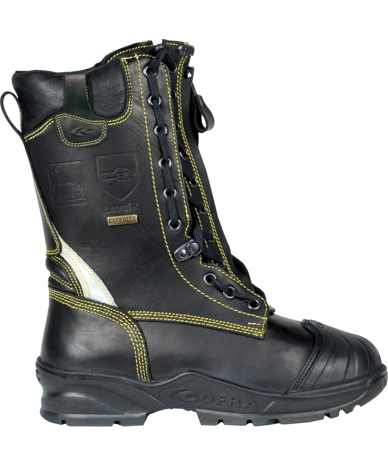 The NO FLAME F2A CI HI3 SRC model is advanced firefighting footwear offering protection against flames, chainsaw cuts, and extreme temperatures. Equipped with the COFRA-TEX membrane, it ensures waterproofness and breathability in demanding environments. The boots comply with EN 15090:2012 and EN ISO 17249:2013 standards, guaranteeing the highest level of user protection.