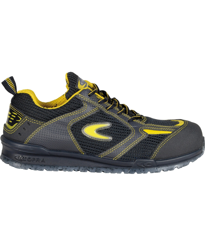 The polyurethane and TPU sole with recycled rubber granules is thin lightweight and sporty. Its construction follows the natural movement of the foot ensuring excellent grip both longitudinally and laterally while effectively absorbing shocks. An additional leather toe guard increases abrasion resistance and the complete absence of metal components makes the footwear undetectable by metal detectors making it suitable for specific work environments.