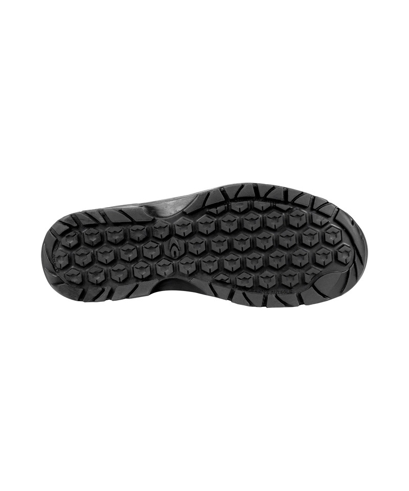 An additional feature is the EVANIT insole, crafted from a blend of EVA and nitrile, thermoformed and anatomically shaped to support the foot in key areas. Its perforated structure and breathable covering improve airflow, while its antistatic properties enhance user safety. The non-metallic TOP RETURN toe cap protects against impacts of up to 200 J, combining strength with lightness. The dual-density polyurethane sole guarantees outstanding grip and stability, with hexagonal suction inserts that perform exceptionally well on slippery surfaces. This design not only enhances slip resistance but also provides a self-cleaning effect for added practicality.