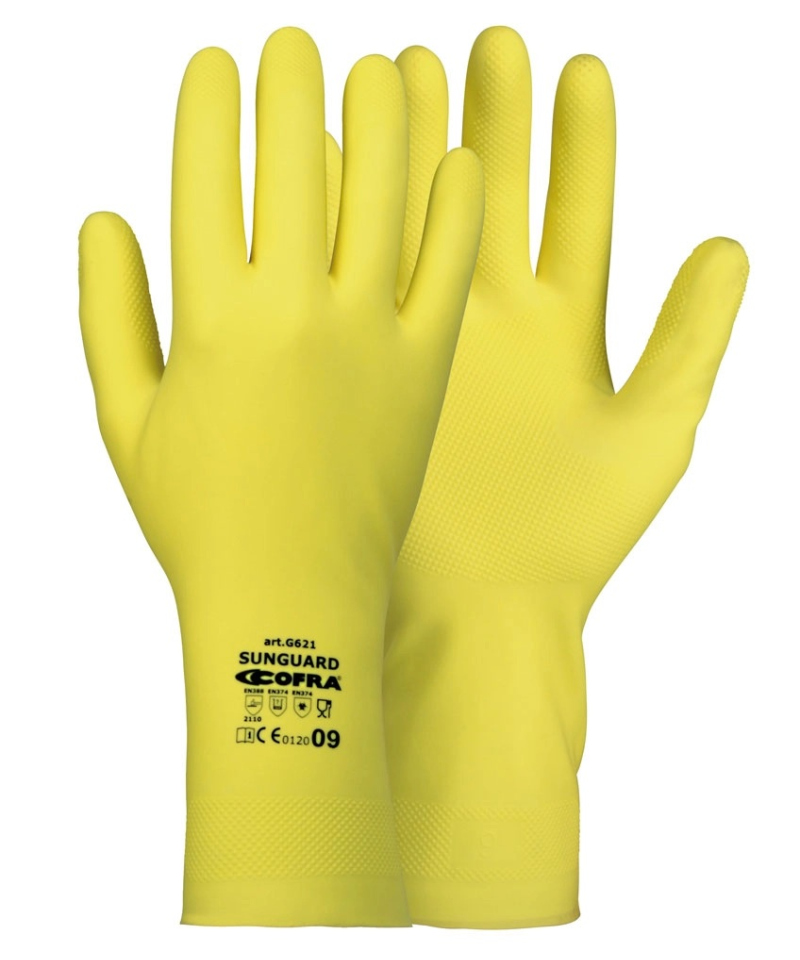 The SUNGUARD latex glove from the CHEMICAL PROTECTION line was designed to combine strong chemical and mechanical protection with softness and flexibility for enhanced comfort. Made from 100% high quality latex, it provides an effective barrier against chemical and microbiological risks, making it suitable for demanding working environments. With a thickness of 0.50 millimeters, it offers increased durability while maintaining flexibility and tactile sensitivity.