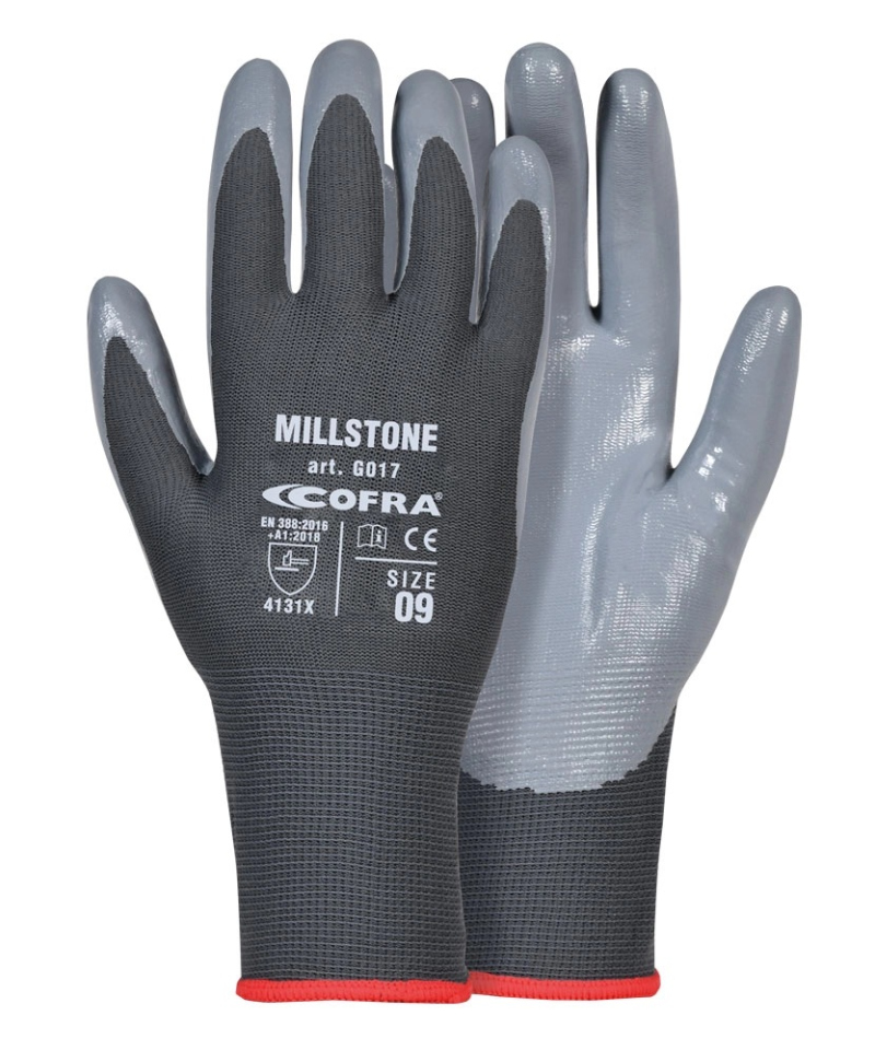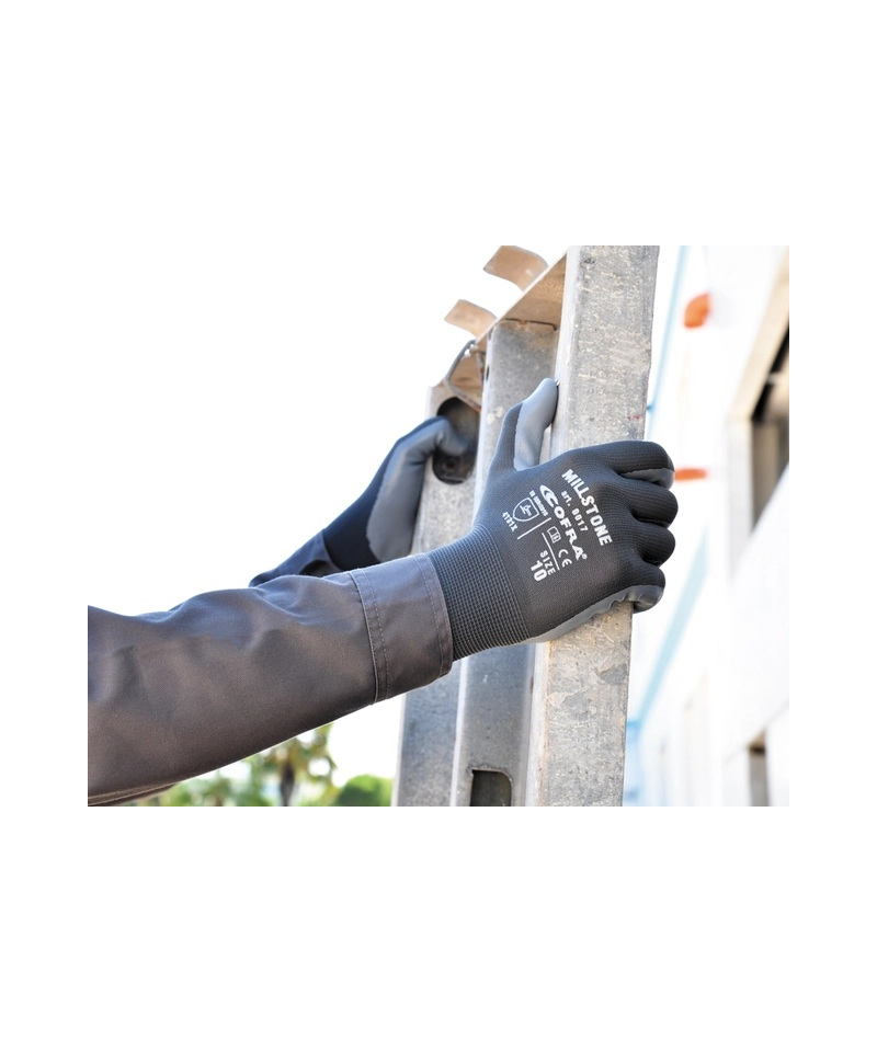 MILLSTONE are nitrile gloves providing high mechanical protection. Their abrasion resistance and excellent grip on dry surfaces ensure secure handling. They are ideal for agriculture construction and precision demanding work.