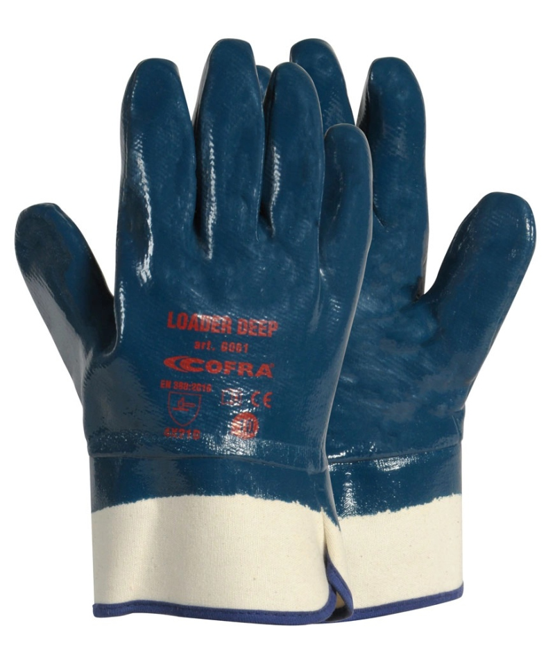 LOADER DEEP are premium nitrile gloves with high mechanical resistance. Fully coated waterproof and equipped with a quick removal system they provide comfort and safety. They are ideal for agriculture construction chemical and plastics industries fishing and municipal services.