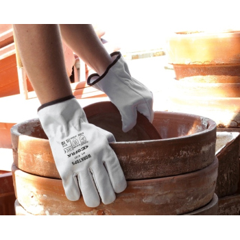 WORKTOPS gloves combine the high quality of cow grain leather with the durability of buffalo split leather. The seamless inner part ensures a perfect fit and prevents pressure marks even during prolonged work. The soft cow grain leather inside the glove provides a secure grip on tools increasing precision and comfort when performing tasks.