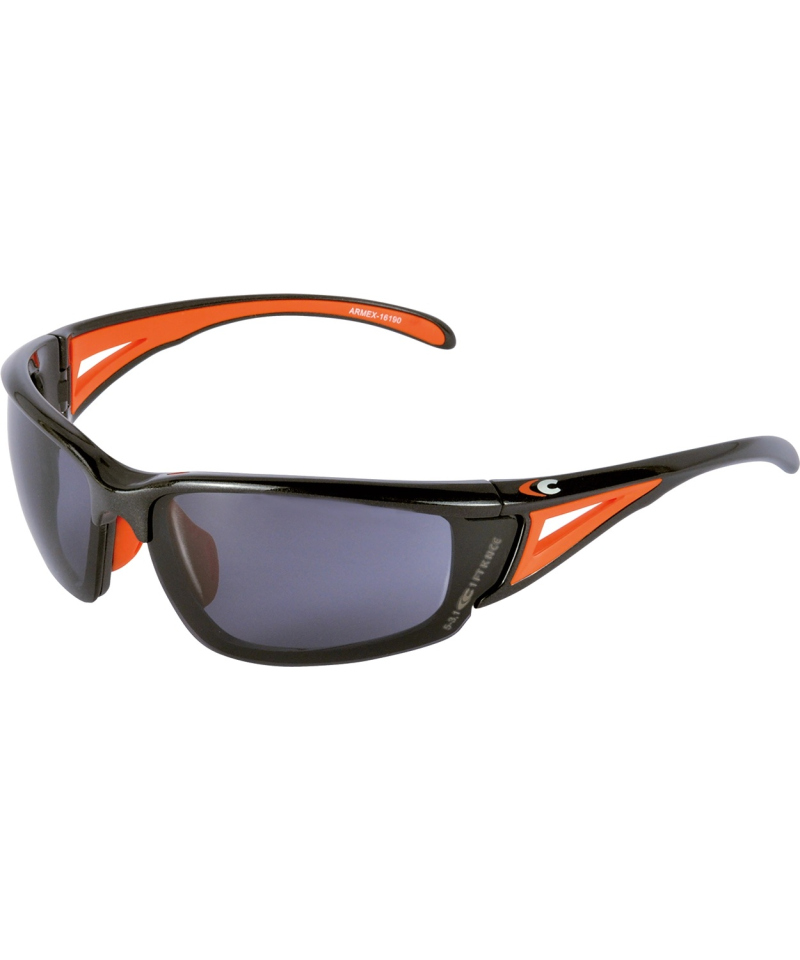 The ARMEX protective glasses in grey version from the Sports line are designed for outdoor work and mechanical tasks where glare risks are present. The polycarbonate lenses with a base curve of 8 feature PLUS K scratch resistant treatment which significantly enhances durability and protects the surface from damage caused by small particles. In addition they include PLUS N anti fog treatment which prevents fogging and disperses condensation formed during transitions from cold to hot conditions providing clear visibility in critical situations. UV400 protection extends lens coverage blocking ultraviolet radiation up to 400 nm which increases eye safety from harmful light.