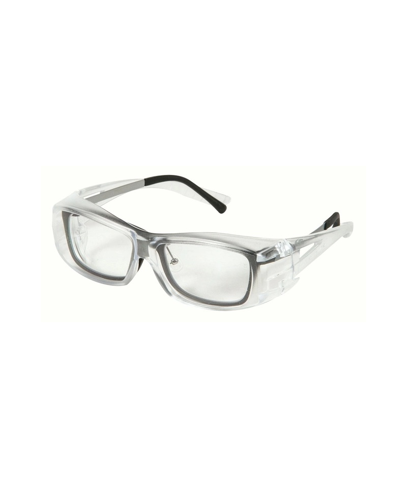 The OVERSLIM safety glasses from the Overglass line are the perfect choice for individuals who require reliable eye protection while wearing prescription glasses. With their carefully designed structure and lens curvature of 6, this model can be comfortably worn over most standard eyeglasses without compromising stability or comfort. The clear polycarbonate lenses ensure natural color perception and excellent transparency, making them ideal for precision and detailed tasks.