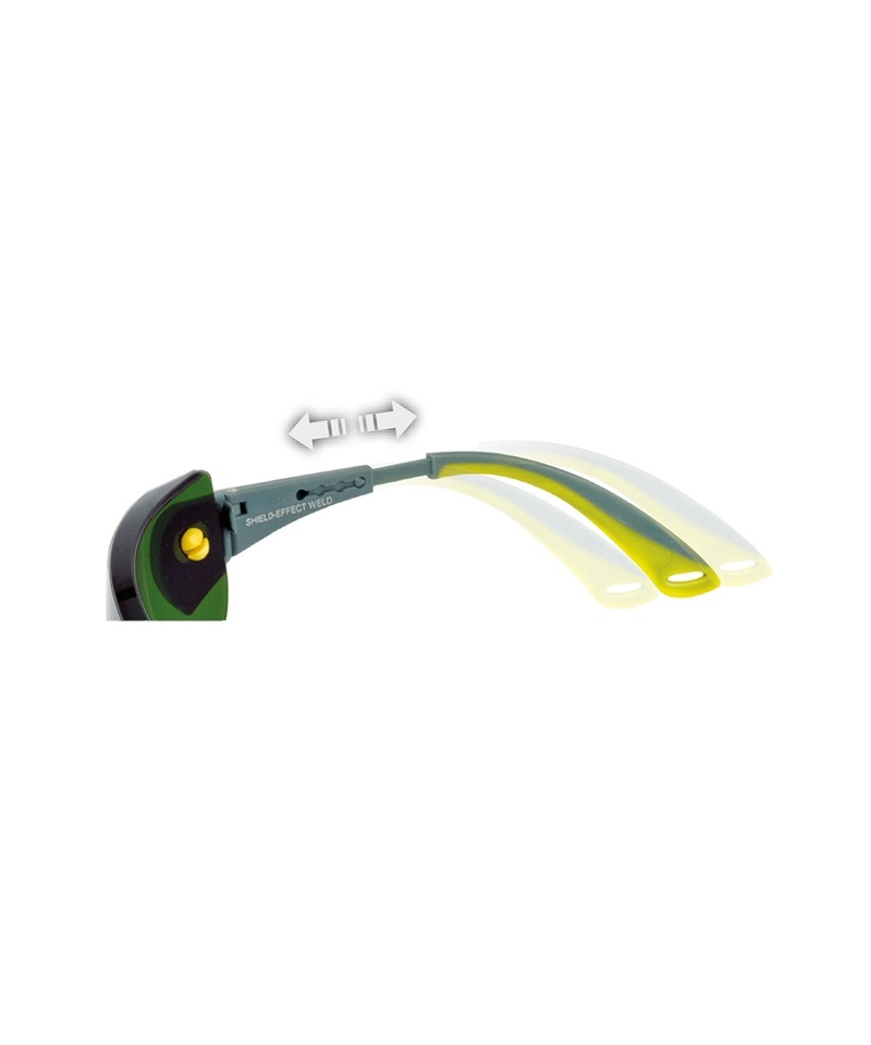 Complying with EN 166 and EN 169 standards and certified with UKCA, the SHIELD-EFFECT WELD weld 3 guarantees superior eye safety in industrial environments. The lenses feature a durable anti-scratch coating that improves resistance to surface damage and maintains optical clarity during prolonged use. The polycarbonate, nylon, and TPR temples are equipped with adjustable length and angle systems, ensuring a customized and secure fit for every user.
