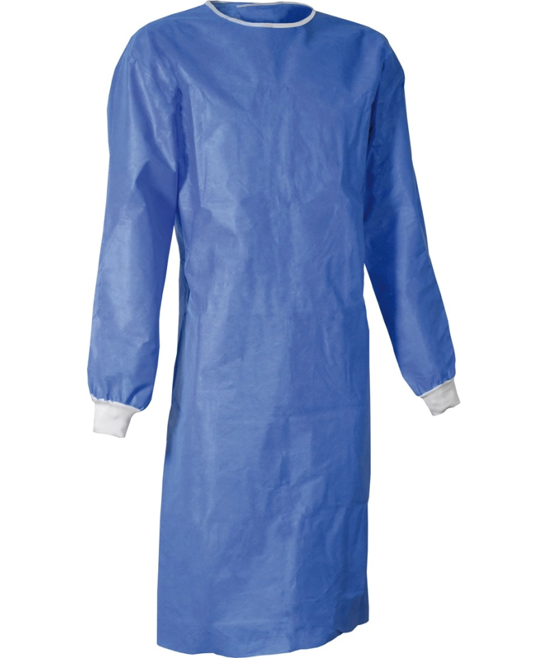The gown features an advanced tie-holding system, an adjustable neck closure with a Velcro strap, and a full back overlap closure for optimal protection. Ultrasonically welded seams enhance durability and reduce the risk of contamination. Ribbed cuffs ensure a secure fit around the wrists, while four internal and external waist ties allow stable fastening during surgical procedures. MEDICSHAPE is latex-free and sterilized with ethylene oxide (EO), ensuring safety for sensitive skin. Its combination of practicality and protection makes it suitable for surgical operations with moderate exposure to fluids and infection risks.