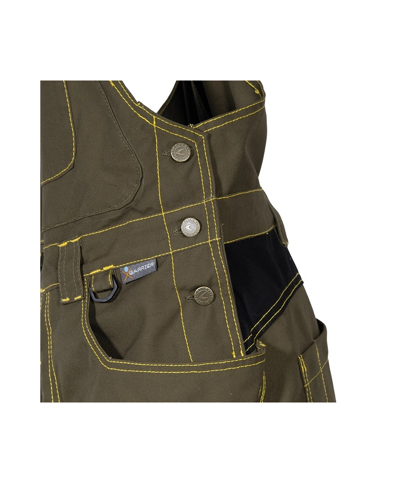 The NOTTINGHAM bib overalls combine advanced textile technology with practical design, perfectly suited for professionals who value durability and comfort. Made from a 65% polyester and 35% cotton blend with a 320 g/m² X-BARRIER coating, the garment provides exceptional resistance to water, oil, and stains while maintaining excellent breathability. Developed using nanotechnology, the X-BARRIER fabric offers softness and long-lasting protection, even after repeated washing, ensuring consistent comfort and performance.